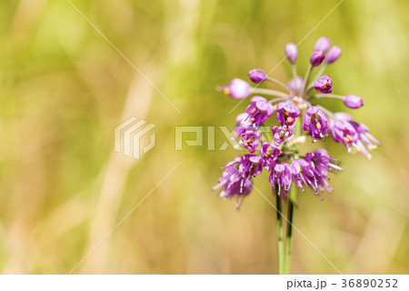 黄緑色を背景にヤマラッキョウの花
