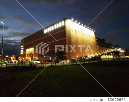 宵闇の空に低く垂れる黒い雲と暗い畑の中に不似合いに明るい大型店舗のイルミネーション