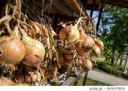 タマネギを軒下に干す