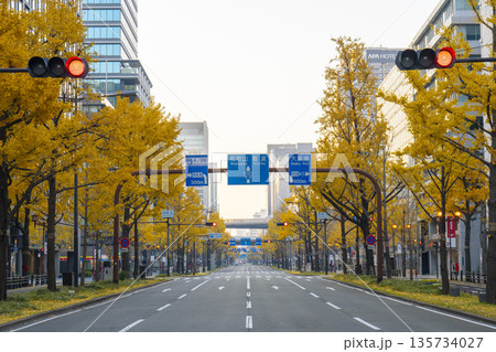 秋の大阪 御堂筋の黄葉したイチョウ並木