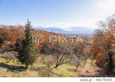 【山梨県甲斐市】黄葉の敷島梅の里と南アルプス