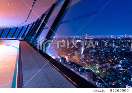 [夕景]文京シビックセンター展望ラウンジから池袋のビル群を望む[夜景]
