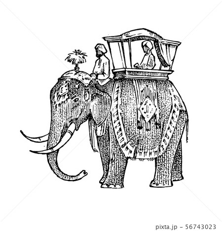 Set India culture. Elephant and temple, a woman in national dress and the inscription double