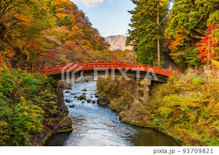 世界遺産「日光の社寺」構成資産 朝の神橋と紅葉