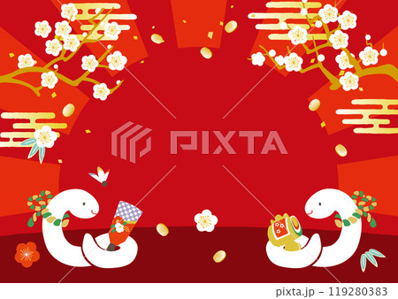 謹賀新年の文字とヘビのシンプルな年賀状素材