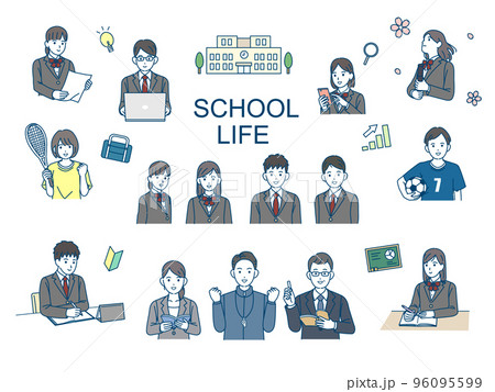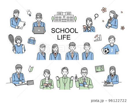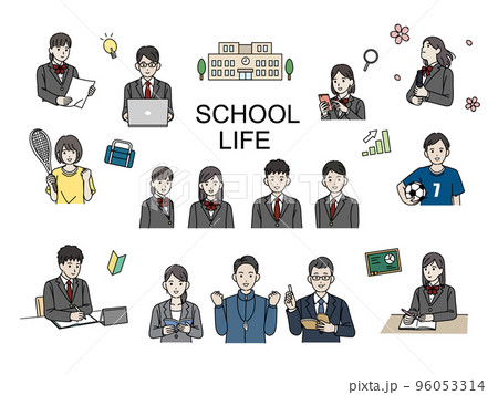 スクールライフ・生徒と先生たちの学校生活|中学・高校シリーズの全員集合イラスト