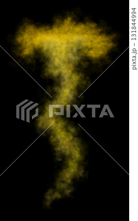 Yellow smoke letter T shape isolated on transparent background with soft texture and abstract foggy appearance