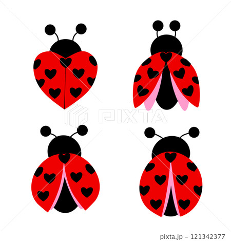 colorful set of ladybugs with hearts, on a white background. hand drawn.
