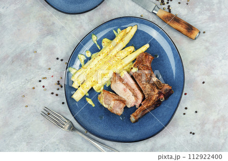 Grilled steak with asparagus.