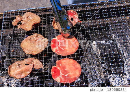 Grilling fresh salmon and trout on barbecue for summer gathering