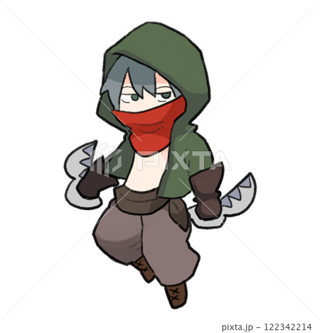 短剣を持った女性の立ち絵素材 表情4種(微笑、目を瞑る、笑顔、怒っている)