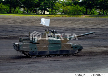 中部・陸上自衛隊・富士学校記念行事・前線手前、展開場所の安全を確認する10式戦車・静岡県小山町(1)