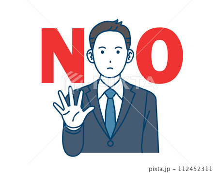 会社員 ビジネスマン スーツ姿 男性 NO 断る 拒否するポーズ 全身 イラスト素材