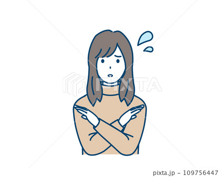 学生 女子生徒 美少女 不正解 NO × 駄目 ポーズ 上半身 イラスト素材