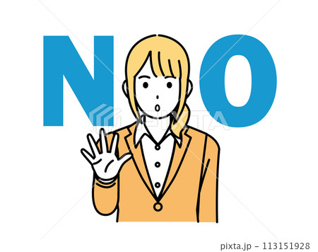 会社員 スーツ姿 女性 NO 断る 拒否するポーズ 全身 イラスト素材