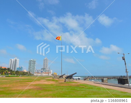 国旗と大砲のある風景(スリランカ・コロンボ)