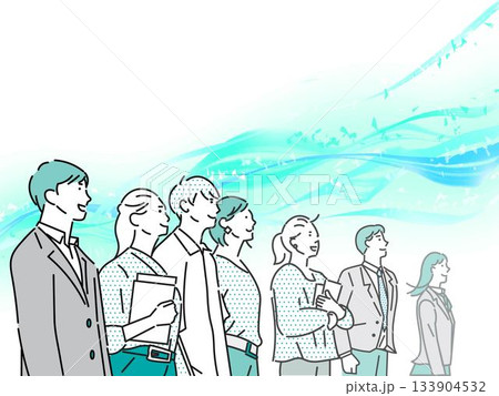 スタートアップのイメージイラストービジネスパーソンー明るい未来を夢見る男女ー抽象的な背景イラスト素材