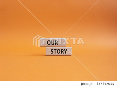 Our story symbol. Wooden blocks with words Our story. Beautiful orange background. Business and Our story concept. Copy space.
