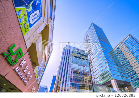 日本の東京都市景観 東京・秋葉原(電気街と超高層ビル)夜景