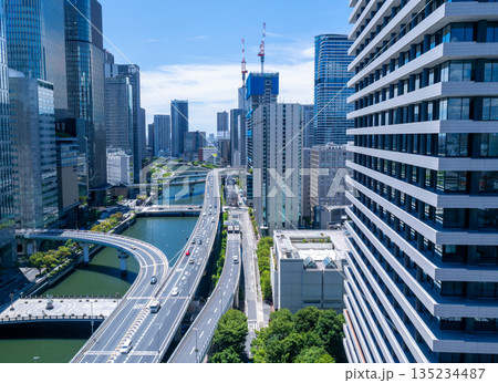 大阪・堂島の高層ビル群と阪神高速11号線(2024年2月11日撮影)