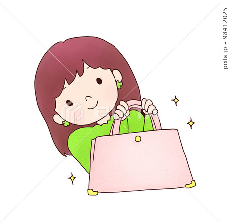 新しいカバンを手にした女性のイラスト