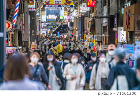 日本の東京都市景観 コロナ禍の東京・浅草。マスク姿の人たちで賑わう新仲見世などを望む=11月15日