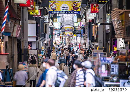 日本の東京都市景観 東京・浅草の新仲見世などを松屋浅草前から望む=2020年10月9日