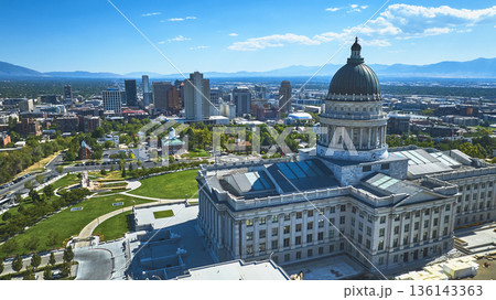 Aerial Utah State Capitol Downtown Salt Lake City Skyline Wasatch Mountains