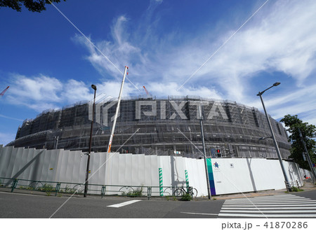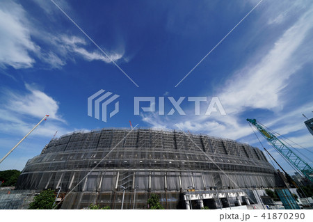 日本の東京都市景観「青空と建設中の新国立競技場」 関連写真・検索キーワードは、新国立競技場関連写真