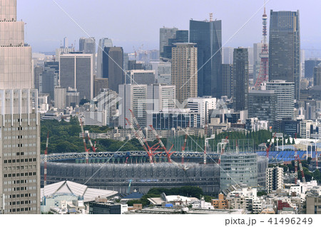 日本の東京都市景観「建設中の新国立競技場」などを望む