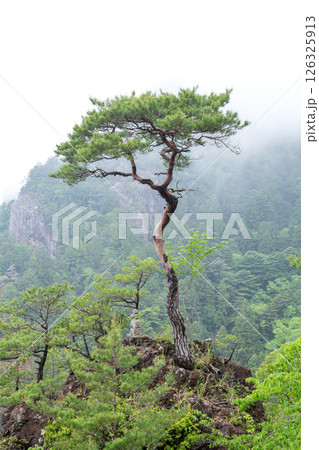 鳳来寺山の鏡岩と一本松(吾郎塚)