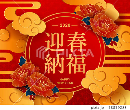 Best wishes for the rat year to come in Chinese word.Happy New Year 2020. Chinese New Year. china red round lantern and Flowers on red background