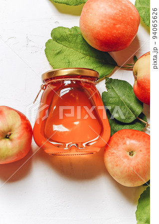 Apples and honey. Autumn composition. Traditional Jewish holiday New Year. Happy Rosh Hashanah.