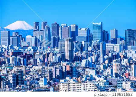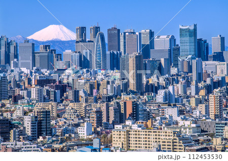 日本の東京都市景観 新景。富士山と変貌する新宿。新宿副都心などを望む。東急歌舞伎町タワーの威容も
