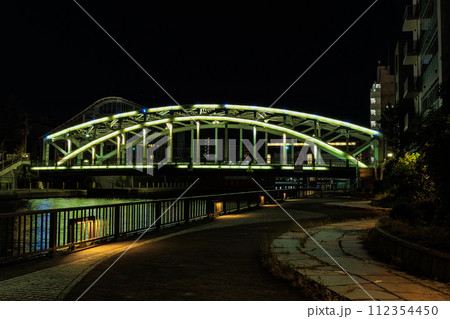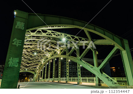 東京 江東区 清澄 小名木川に架かる萬年橋の夜景