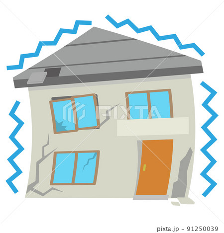 地震被害 二階建ての家 アイコン イラスト