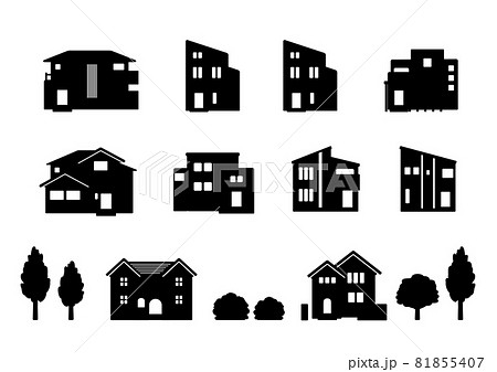 建物アイコン 不動産 家 住宅 戸建て シンプル イラスト セット バリエーション 線画 ベクター
