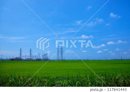 海里より庄内変電所を望む 鶴岡市 新屋敷 藤島駅近く