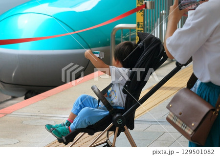 東北新幹線を見て喜ぶ子供 新幹線の大好きな子供