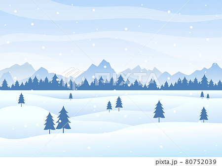 Christmas Winter Landscape and New Year Background Vector Illustration With a View Of Falling White Snow, Trees, Mountains In Flat Style Design