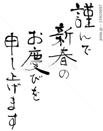 筆文字の謹んで初春のお慶びを申し上げます 賀詞の墨イラスト
