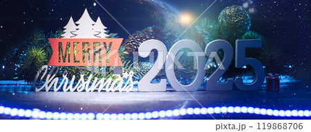 New Year's Eve 2025 Celebration Background.Christmas lights bokeh background. Holiday postcard. Happy New Year 2025