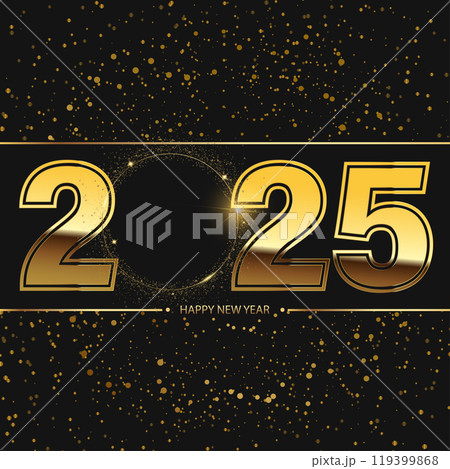 Elegant Gold 2025 Happy New Year Celebration Black Background. Vector