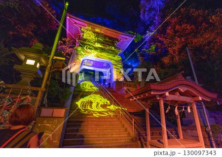 日本の藤沢都市景観 ライトアップされた江島神社・日本三大弁財天などを望む