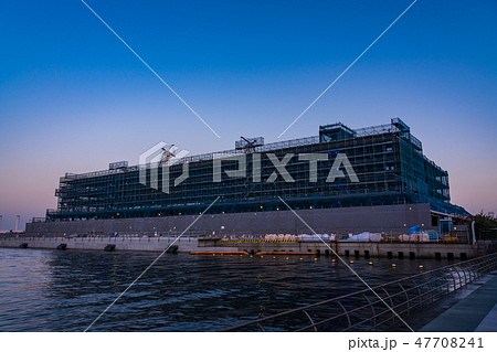 (神奈川県)横浜みなとみらい 建設中の新港地区客船ターミナル 夕景