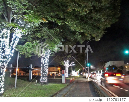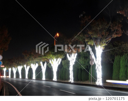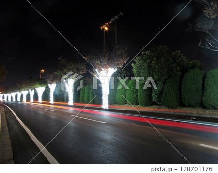 太田市新田文化会館・エアリスホール横の市道1級42号線にて白く輝くイルミネーション