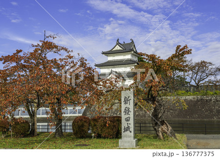 晴れ渡った新発田城址公園から新発田城 三階櫓(新潟県新発田市)