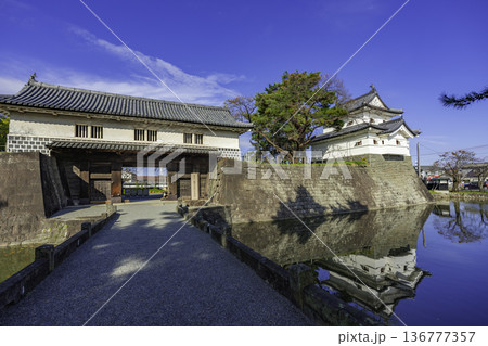 晴れ渡った新発田城址公園から新発田城 本丸表門(新潟県新発田市)