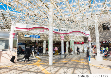 郊外の住宅地 休日の駅前風景 新百合ヶ丘駅