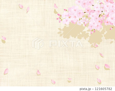 揺れる桜の木とベージュ色の麻布、綿の柔らかい素材のテーブルクロスの和風フレーム壁紙背景素材